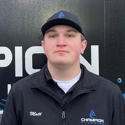 Hi, my name is Tanner! I started my plumbing career at Champion Plumbing in 2012 and love what I do. I like problem-solving, take pride in my work, and strive to get the job done as affordably as possible. In my free time, I enjoy spending time with my family, friends, and, of course, my animals. I like watching the Vikings play football, going out on the river, or fishing or golfing.